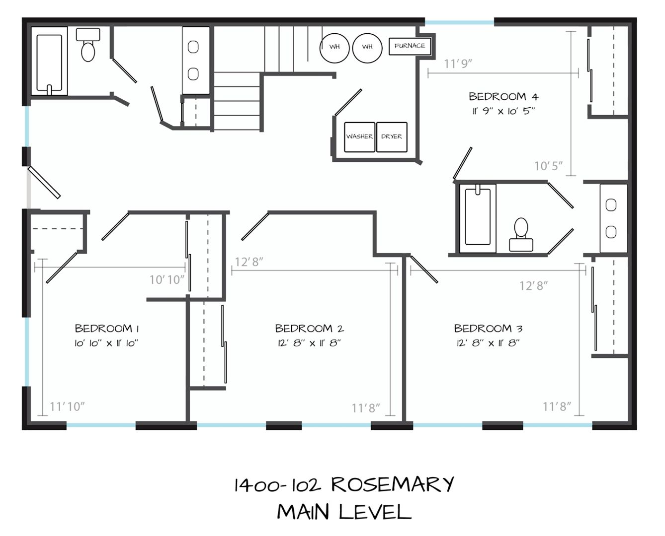 four bedroom 2.5 bathroom multi-level apartment